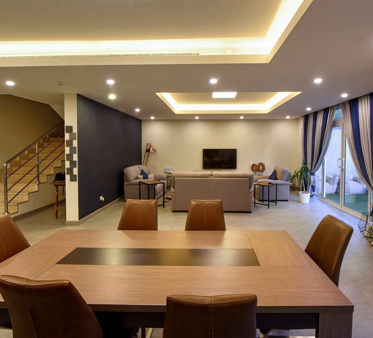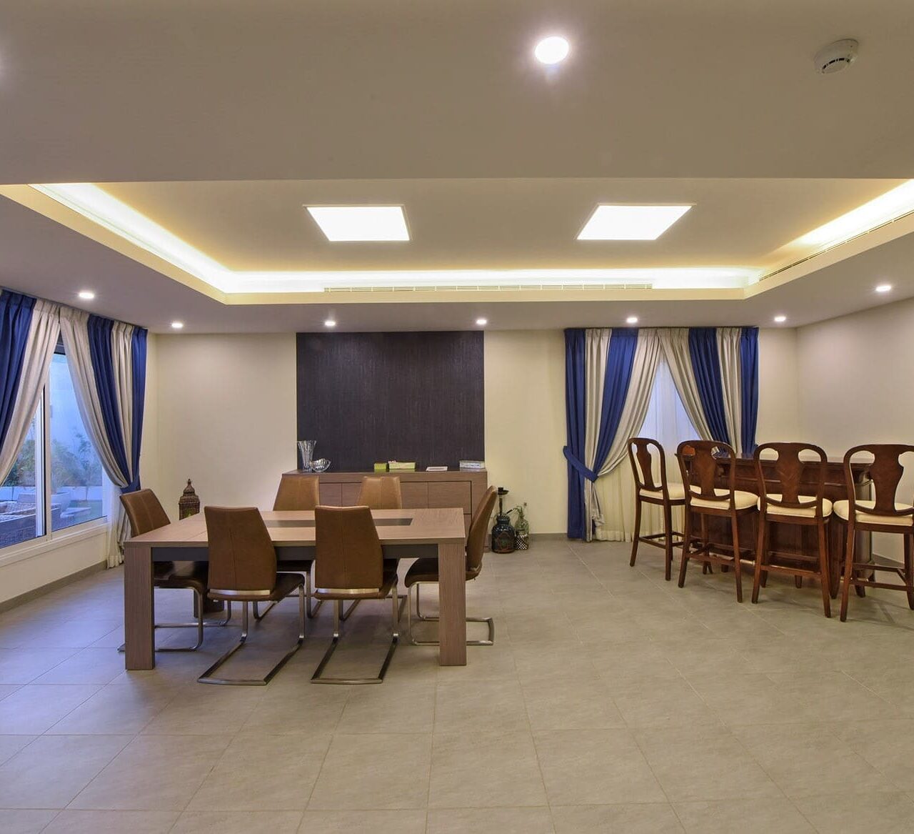 These homes offer spacious layouts perfect for family gatherings and relaxation. Amenities include car access, dining and retail options, on-site deliveries, ample parking, international TV, round-the-clock security, event spaces, and 24/7 maintenance.