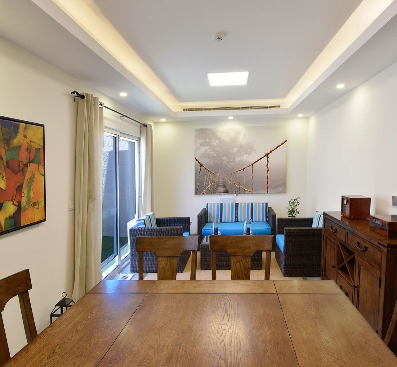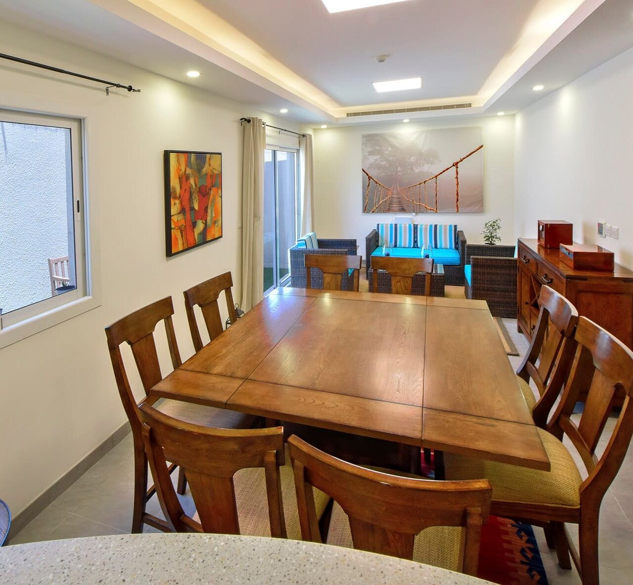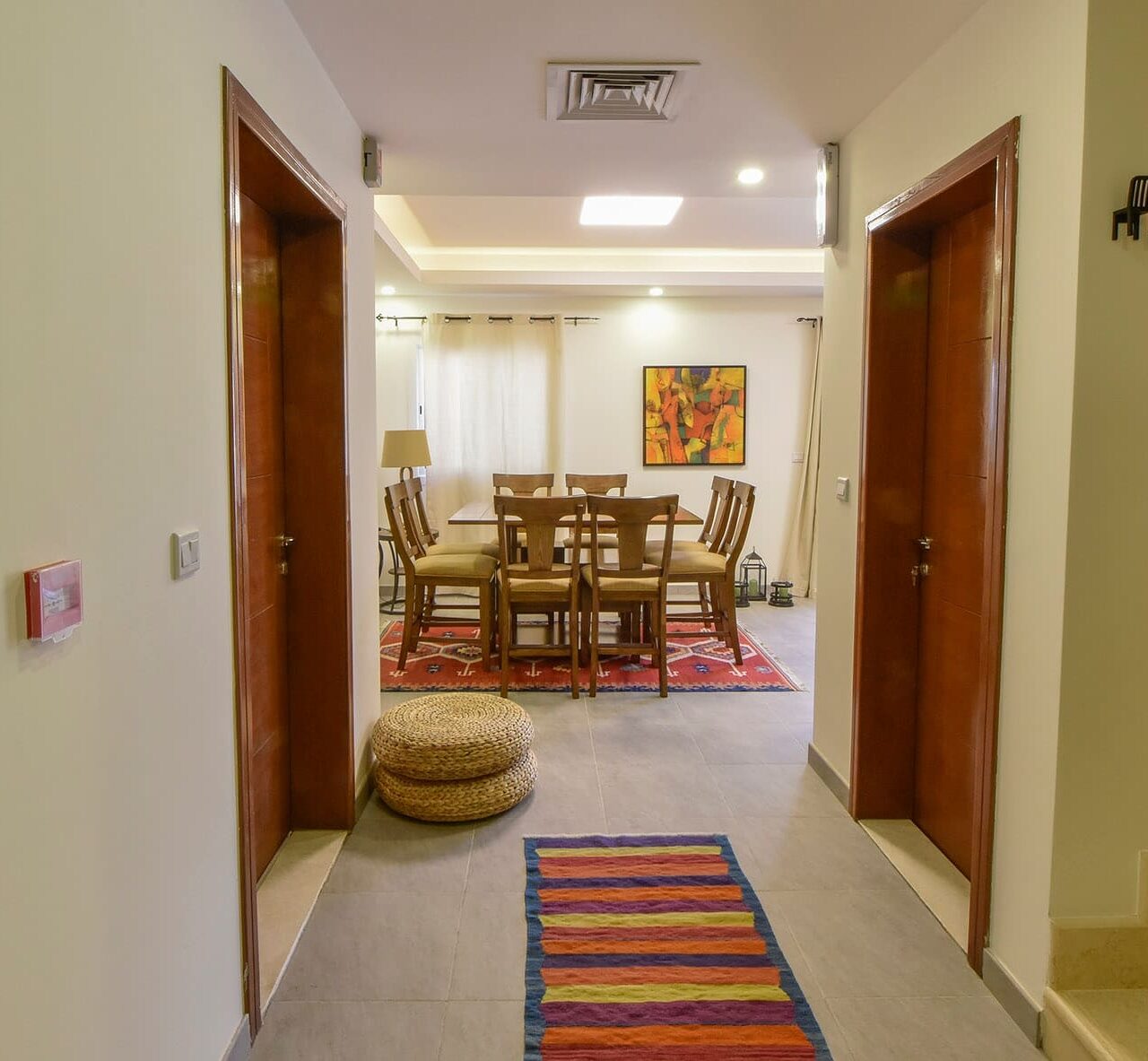 These homes offer spacious layouts perfect for family gatherings and relaxation. Amenities include car access, dining and retail options, on-site deliveries, ample parking, international TV, round-the-clock security, event spaces, and 24/7 maintenance.